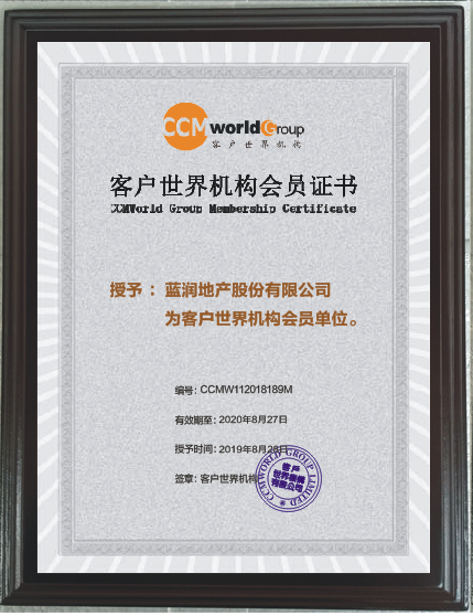 蓝润地产股份有限公司成为客户世界机构2019/2020年度企业会员
