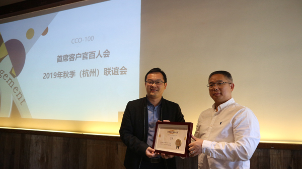 客户世界消息:2019年11月15-16日,首席客户官百人会2019秋季联谊活动在浙江杭州举行,浙江远传信息技术股份有限公司协办了本次活动。本次活动是首席客户官百人会(CCO100)季度性会员联谊交流活动,分为发展研讨环节和会员联谊环节,活动内容丰富、达到了良好的沟通联谊效果。活动期间为新晋嘉宾成员沈波先生颁授了CCO100铭牌。