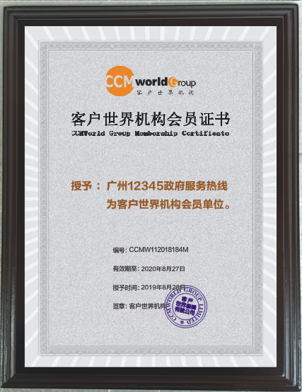 广州 12345政府服务热线成为客户世界机构2019/2020年度企业会员