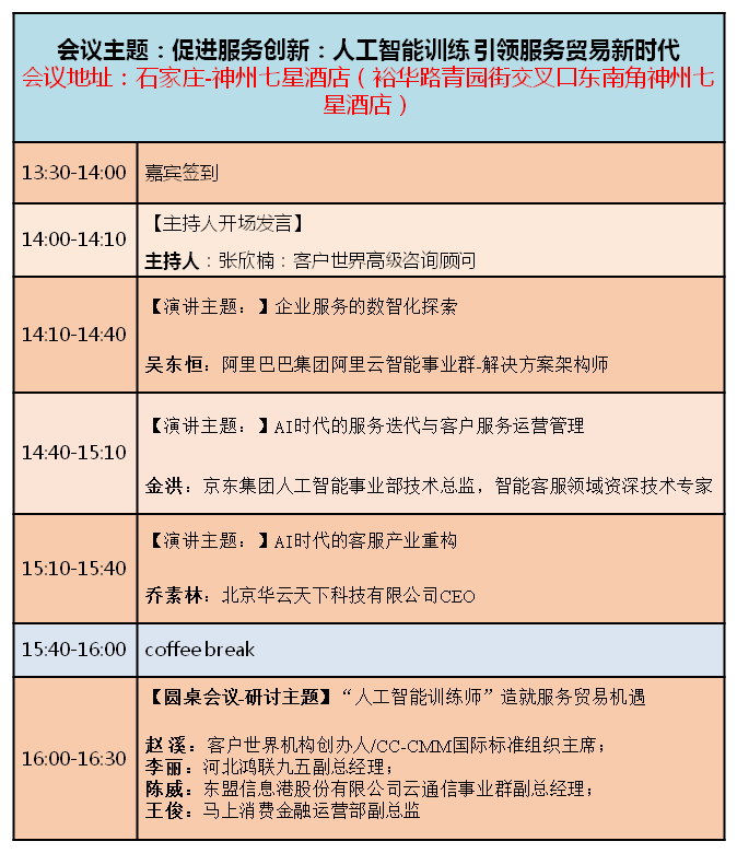 人工智能训练专题论坛(12月20日,石家庄)会议日程