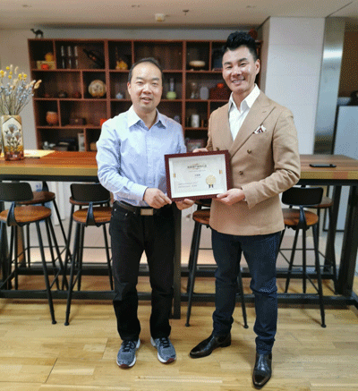 CCO100 创会理事赵溪为方俊雄颁授成员铭牌