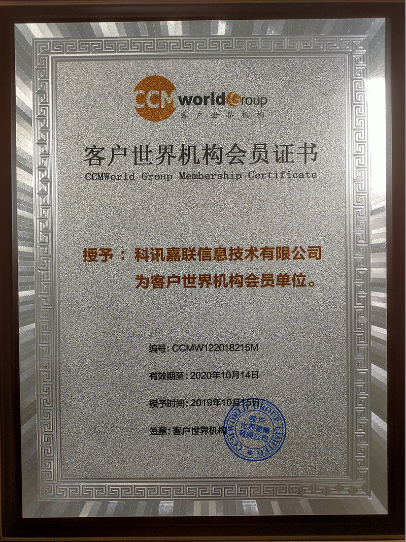 2019年10月15日,借举办“2019第十五届客户世界年度大会”的契机,科讯嘉联信息技术有限公司正式成为客户世界2019/2020年度企业会员。