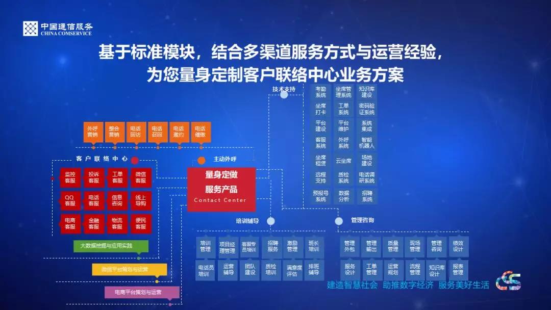 中通信息服务有限公司呼叫中心(简称中通呼叫中心)隶属于中国通信服务股份有限公司(简称中通服公司),中通服公司是经国务院同意、国务院国有资产管理委员会批准,在国家工商行政管理总局登记注册成立的大型国有企业,由中国电信集团公司、中国移动通信集团公司、中国联合网络通信集团有限公司三大电信运营商控股,在全国范围内为通信运营商、媒体运营商、设备制造商、专用通信网及政府机关、企事业单位等提供网络建设、外包服务、内容应用及其他服务,并积极拓展海外市场。