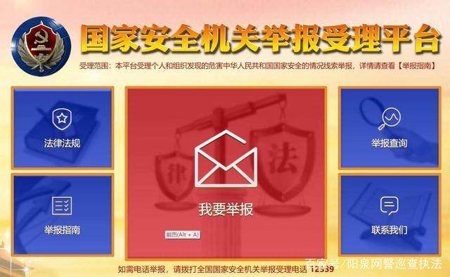 任何组织和个人可通过登录该网站,对发现的危害国家安全犯罪行为、间谍行为和其他危害国家安全行为的情况线索进行举报,也可以拨打全国统一的举报受理电话“12339”进行举报。国家安全机关将依法受理举报信息并对有关组织和个人依法举报的行为予以保密。对举报属实、为维护国家安全作出积极贡献的,国家安全机关将予以奖励;如借举报名义故意捏造、谎报情况或诬告他人的,妨碍国家安全机关工作或造成其他不良社会影响的,国家安全机关将依法追究其法律责任。