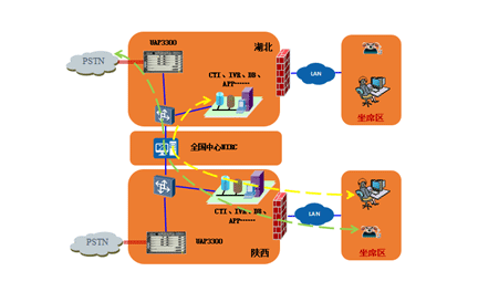 这次跨省的话务迁移是采用网呼的方式,在11185全国中心(集团总部)网呼总控NIRC服务器的控制下,建立湖北11185中心与陕西11185中心CTI的网呼信令通道,语音流通过邮政内部网VOIP传输来实现的(如图);虽然这套华为UAP3300呼叫中心平台已经年代久远,但是由于运营维护保障得力,系统运行依然稳定;特别是技术支撑团队不断完善优化的网呼功能经受住了这次紧急迁移的考验,华为交换系统依然给力。