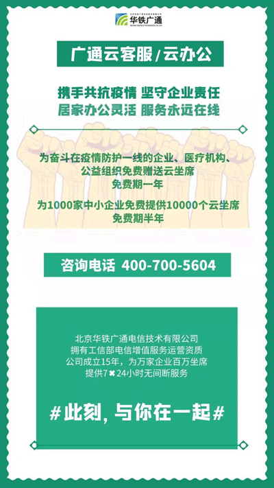 十几年的成长,中国的云呼叫中心已经有了巨大的进步。如今,是反哺回馈社会的时候了。看到“华铁广通抗疫支撑群”里同事们在忙碌着为客户配置远端座席,看到客户世界“疫情呼叫中心应急方案”群里同行们的努力,我们有理由相信,一切都会更好!