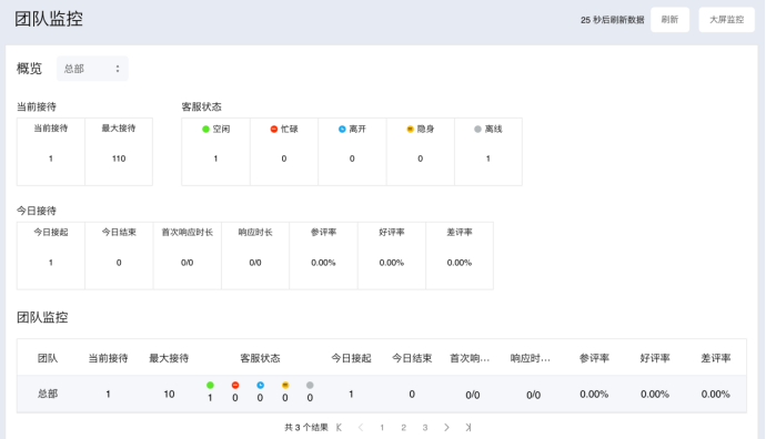 针对客服居家办公、人员无法集中管理的问题,通过团队管理不同业务线不同地域分散客服人员,通过设置不同团队,每个团队设立客服主管,团队客服主管只需管理本团队,实现客服人员组织架构管理并根据组织架构控制数据权限。通过实时监控、现场管理、团队监控、排队监控、会话超时预警、满意度预警、敏感词告警等功能,实现业务高峰下的多维智能监控,强力应对海量咨询,轻松管控服务全流程。通过技术手段,改变依靠人盯人和人管人的运营管理方式,实现去中心化管理,来解决远程办公和信息传达不同步带来的执行问题、效率问题和服务质量问题。