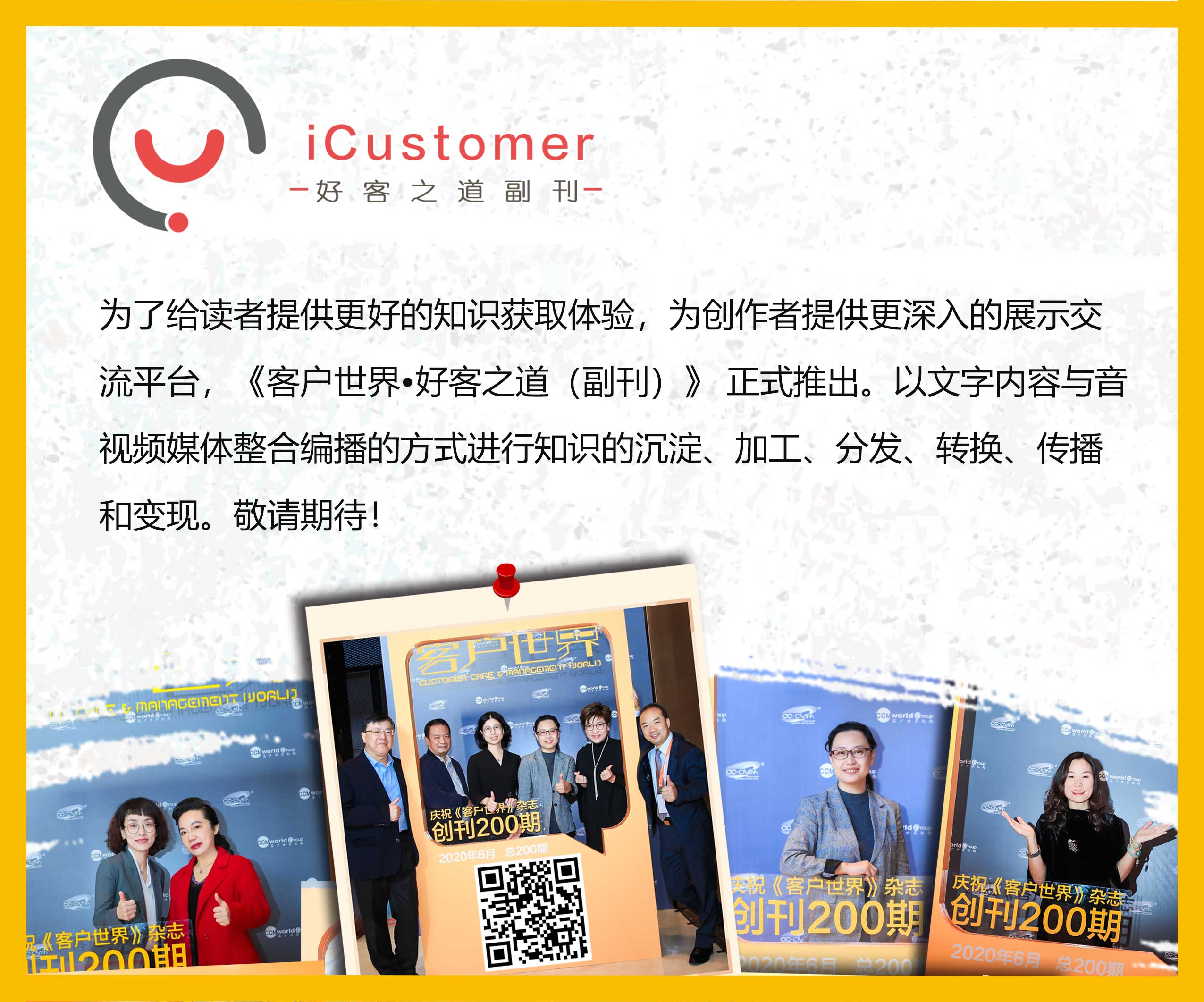 为了给读者提供更好的知识、信息获取体验,为创作者提供更深入的展示平台,《客户世界》编辑部决定于2020年起在杂志中新增“好客之道”副刊,以文字内容与音视频媒体整合编播的方式进行知识的沉淀、加工、分发、转换、传播和变现。