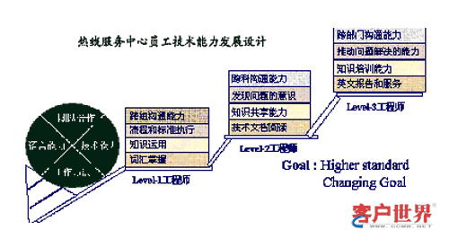 很多管理者把热线中心理解为电信模式,劳动密集型的企业,员工技术素质以高中或中专为主。爱普生公司的产品为IT产品,所以爱普生公司把热线服务定位为以技术服务为主。热线服务中心采用三级工程师的管理结构,专家级工程师(Level-3)除直接解决未回复问题外,主要工作是提高员工技术素养,根据IT产品的发展方向,让员工明确在技术职业生涯不同阶段的学习目标。同时爱普生热线服务中心与多家IT公司建立了产品交换渠道,丰富了实验室的测试条件,让员工可以接触到最新IT产品,激发了员工求知的兴趣。此外,热线中心积极鼓励员工总结问题,公布在知识库系统中,员工对知识库系统的贡献可以得到正确评价。爱普生公司热线服务中心的员工从进入工作岗位后将有序并有目标的不断进行学习和提升。