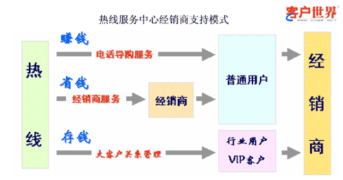 热线对于销售支持的另一部分就是直接的电话销售以及客户关系维系和管理。对于打入热线希望购买产品的用户可以直接通过热线电话进行订购,热线把用户的信息以及需求通过内部系统发给经销商,经销商就可以直接与客户联系送货上门,最终把销售结果计录在系统里,并且可以跟踪用户的耗材使用周期进行再次销售。