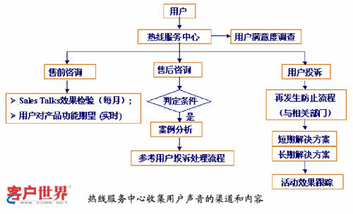 热线服务中心强化用户挖掘和用户维系工作,与公司各个部门都建立了合作关系,通过产品调查以及客户关系管理,为其他部门提供所需的数据信息。通过建立一站式的服务将销售以及维修部门更紧密的结合在一起,一方面有效的提高了客户满意度,另一方面也提升了热线中心的自身价值。
