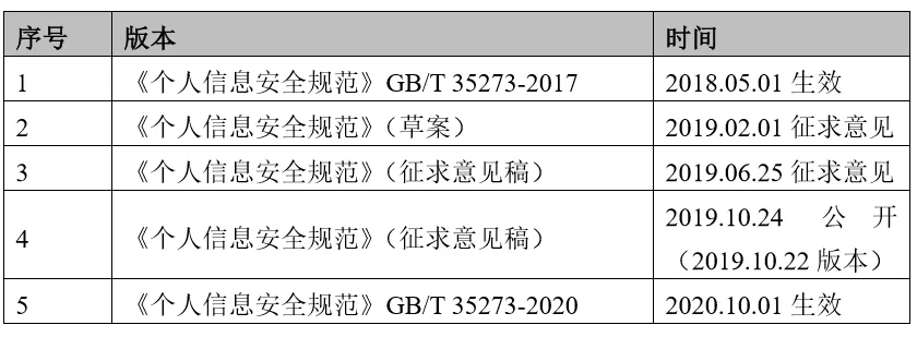 问题一、《个人信息安全规范》GB/T 35273-2020的修订历程