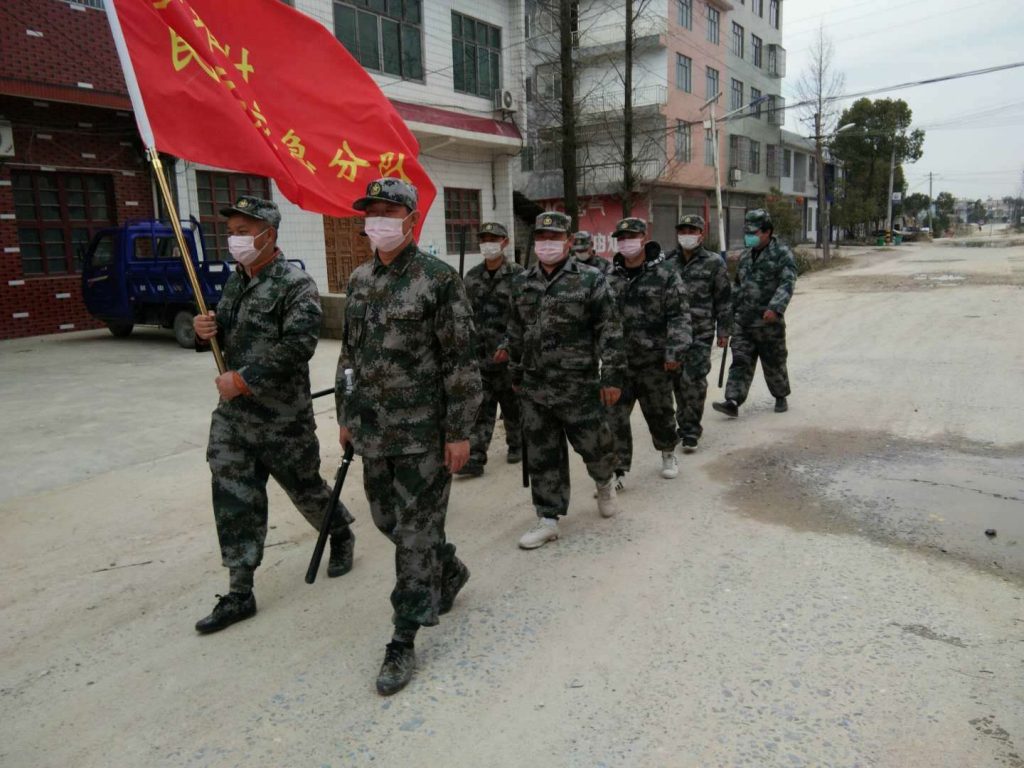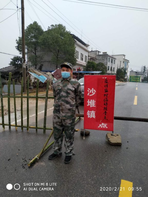 在湖北省咸宁市通城县沙堆镇沙堆村,总能看到一群穿着迷彩服的身影忙碌穿梭在大街小巷,他们是疫情期间紧急成立的民兵应急分队,而鼎和保险客服中心的杜耀武就是其中一员。