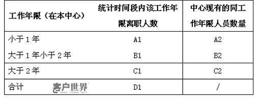 例如:(统计时间段内)在中心工作1年以上的离职人员总数占中心现有工作满一年人员总数的比例