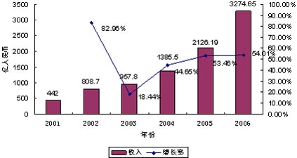 2006年,32家国家火炬计划软件产业基地共实现总收入6743亿元,比2005年增长97%;其中软件产业收入3274.65亿元,比2005年增长54.01%,软件出口创汇41.73亿美元(折合人民币334亿元),比2005年增长了145%。