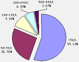 图3 2006年软件园区不同人员规模的企业数量分布图
