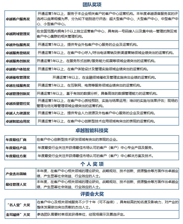 每年的评选活动引入国际知名的CustomerServicesAudit和CCSI (Contact Center Satisfaction Index)作为评审指标参考体系;充分体现国际化视野。