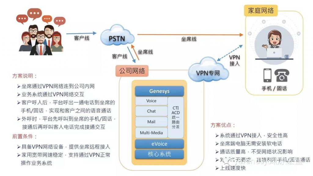 方案二:业务系统基于VPN网络,语音基于PSTN网络