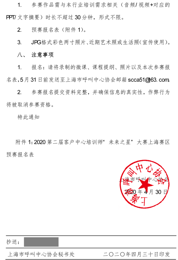 由客户世界机构主办的2020第二届客户中心培训师“未来之星”大赛于5 月1 日正式开启,此次大赛通过对客户中心运营机构内训师和行业新生代职业培训师的推荐和选拔,助推优秀讲师人才脱颖而出,成为行业新星,提升整体讲师的专业水平。现上海市呼叫中心协会组织开展上海赛区预赛,具体事项通知如下: