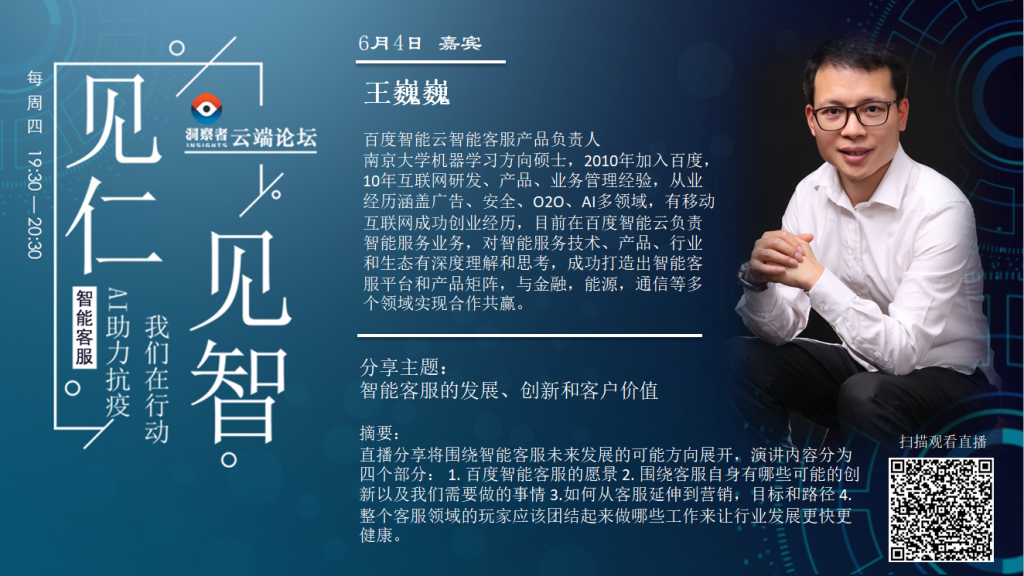 见仁见智:百度智能云智能客服产品负责人王巍巍(6.4-洞察者云端讲堂)