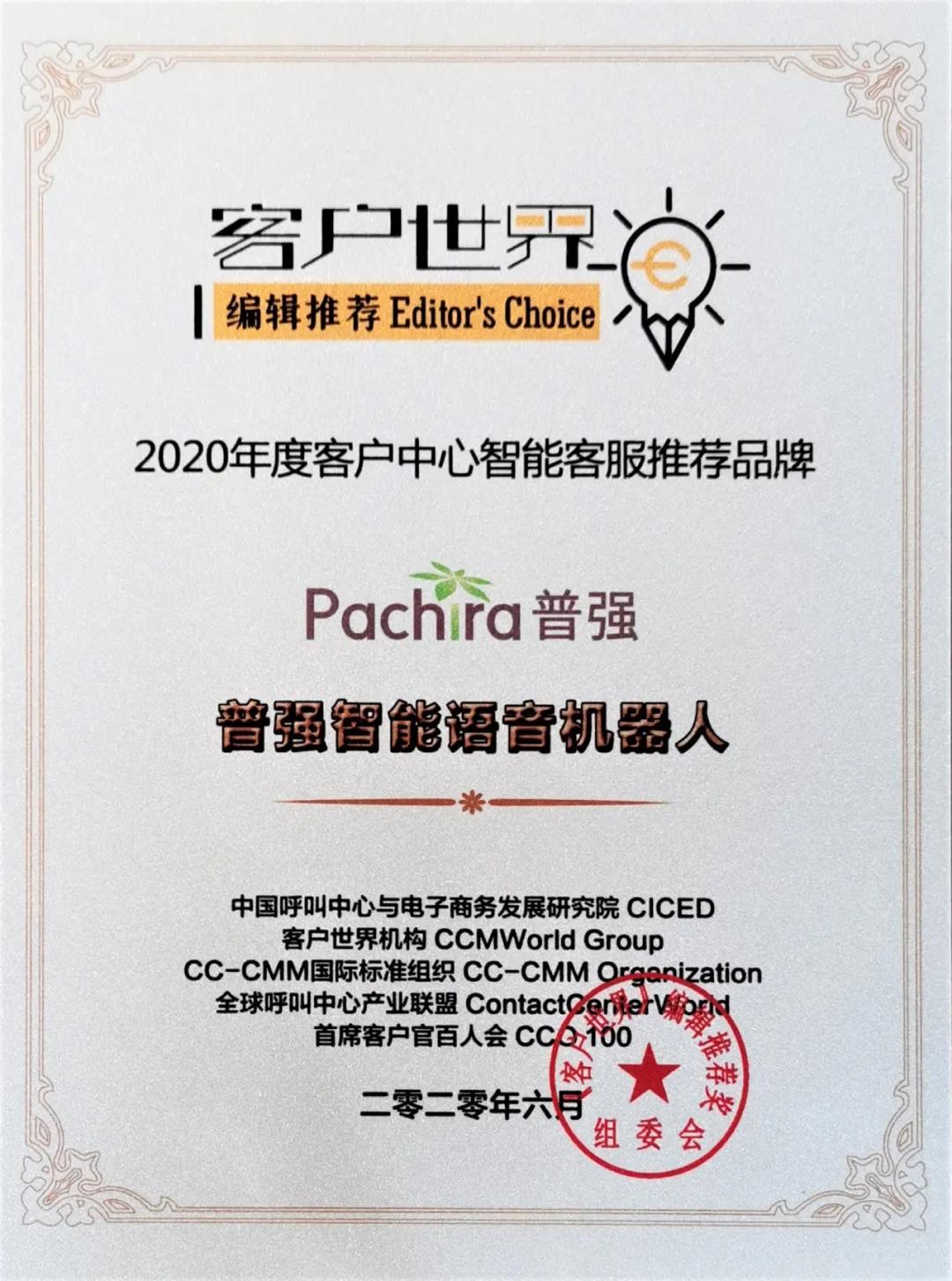 普强智能语音机器人入选《客户世界》编辑推荐: 2020年度“智能客服”推荐品牌榜