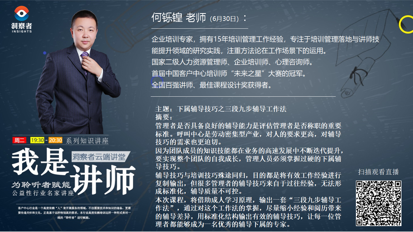 我是讲师:何老师谈下属辅导技巧(6.30-洞察者云端讲堂)