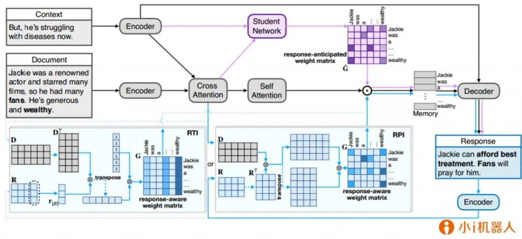 众所周知,神经对话模型的响应虽然正确,但缺乏足够的内容和信息。通过阅读进行对话(CbR)可以大大增强信息量,其中针对给定的外部文本进行对话,围绕CbR任务,我们提出了一种新颖的预期-回复文本存储,用来利用和记住在回复生成的过程中重要的文本信息。我们通过教-学框架构造了预期的记忆。向教师模块提供了外部文本,上下文和真实的回复,教师请求回复并学习回复-意识权重矩阵;学生模块根据外部文本,上下文和教师模块的输出,学习如何预估教师模型中的权重矩阵,并构建预期的响应文本记忆。我们通过自动和人工评估验证了我们的模型,实验结果表明我们的模型获得了CbR任务的最高性能。