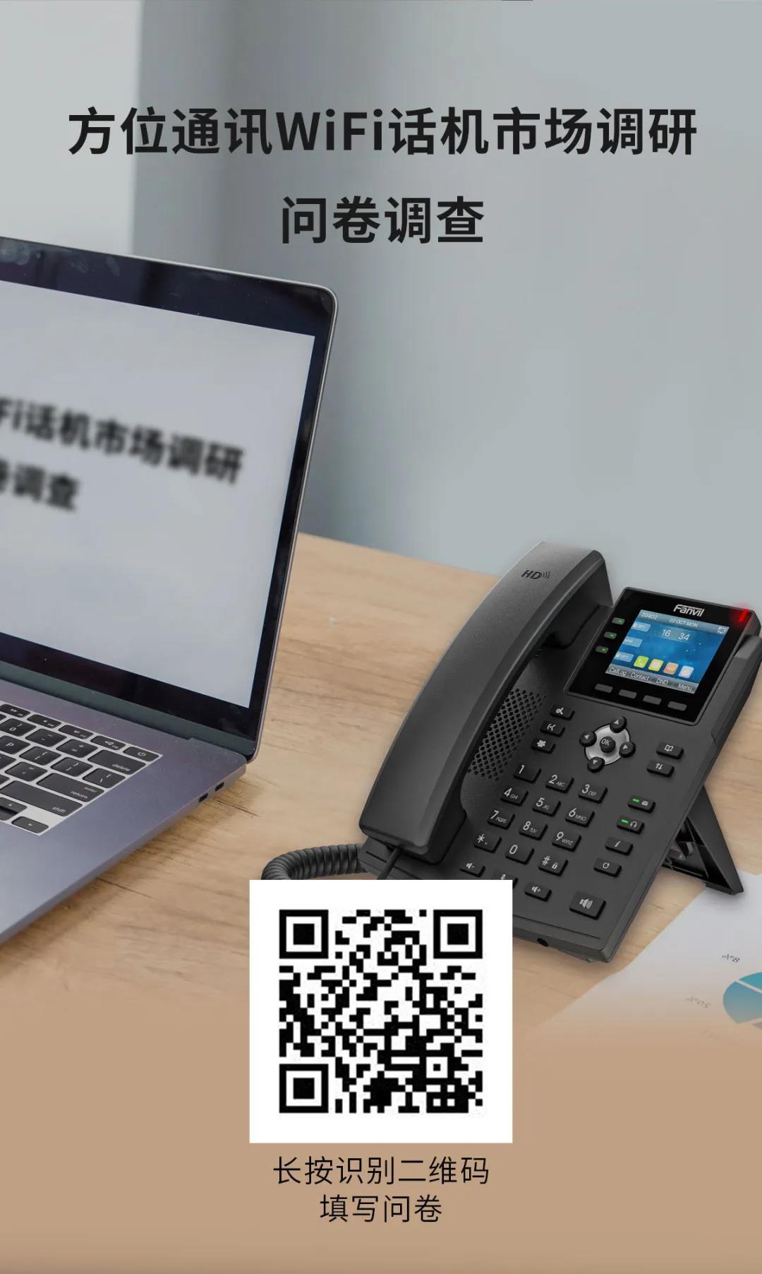 读到这里,相信很多小伙伴已经迫不及待想体验这款WiFi话机了,欢迎扫描下方二维码填写市场调研问卷,您将有机会免费获得方位X3V测试机。