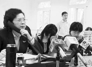 广州市副市长王晓玲在接听市长热线。