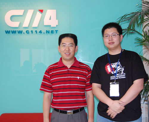 天润融通总经理吴强与本站记者在C114门前合影