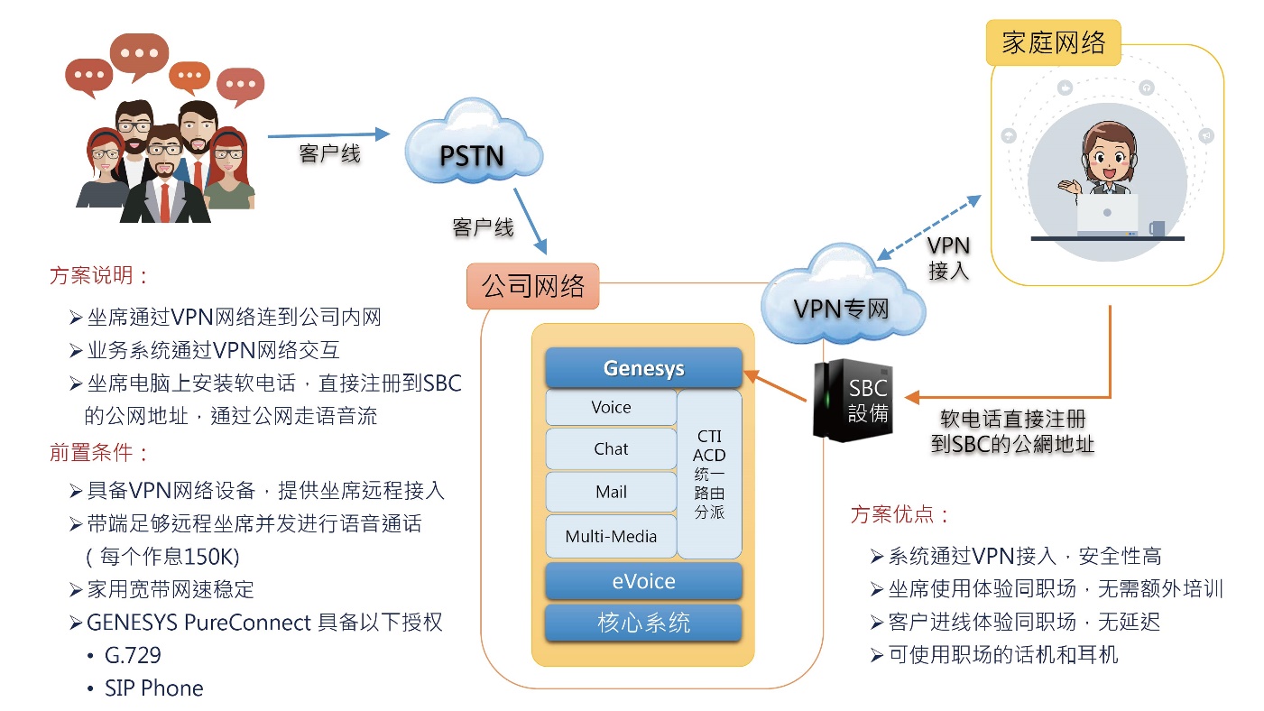 方案二:业务系统基于VPN网络,语音基于PSTN网络