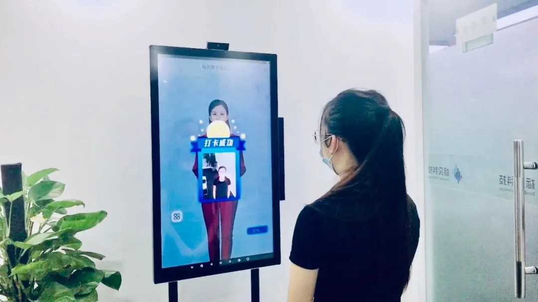 (虚拟数字人正在为员工签到打卡)