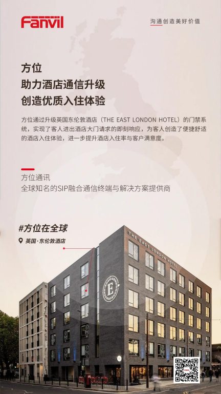 酒店服务品质提升,数字化转型是关键。方位通讯携手The East London Hotel在行业数字化上先行一步,运用前沿科技,探索酒店行业数字化转型升级模式,为客人提供优质入住体验,树立酒店融合通信新标杆。
