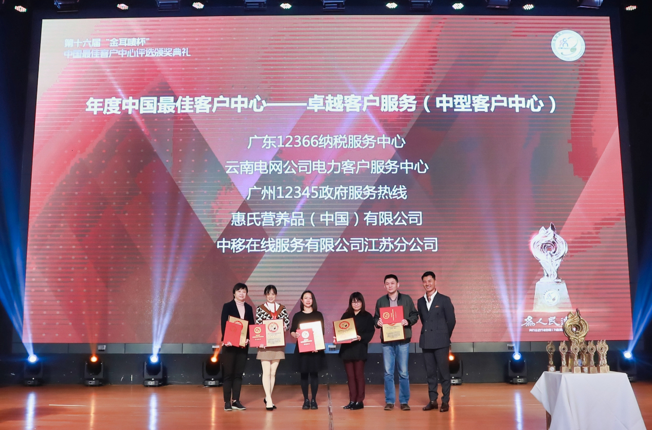 中移在线服务有限公司江苏分公司在本年度的“金耳唛杯”中国最佳客户中心评选中获得:卓越客户服务(中型)奖。