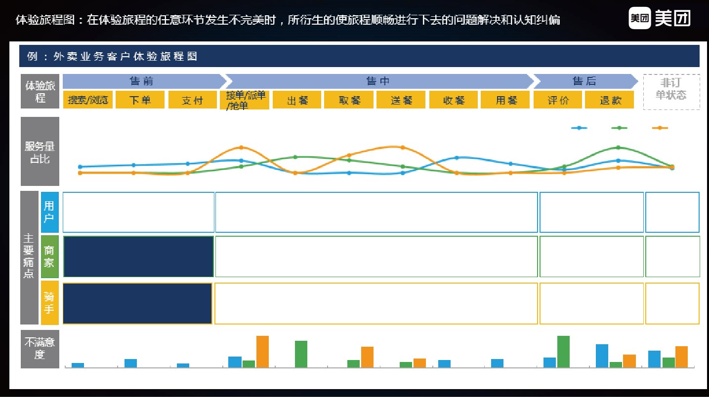 如上是美团服务业务中心结合实际数据从客户的问题发生与问题解决双重维度分析,找到合适的解决方案的实际案例,通过落地应用来实现服务设计的价值。