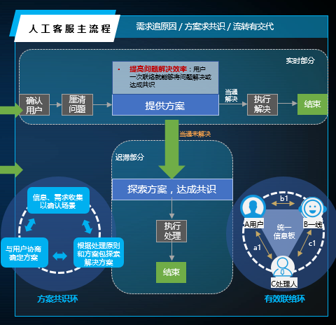 在梳理清晰客户全旅程的动线和服务旅程的触点后,实现改善客户交互体验和减少客户费力度的实际落脚点则是流程的优化,这里涵盖人工和智能的流程,以及知识体系的设计。