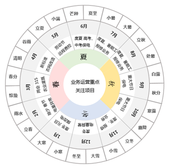 如电力行业的业务运营可结合节气特点,发现不同时节业务运营关注重点存在一定差异性,由图2可见:12—2月(大雪至大寒)期间,客户电量异常诉求较多; 6月(芒种、夏至期间)涉及高考保电,话务现场会设立高考保电专席,重点关注客服专员的接听状态、服务水平;7、8月(小暑至处暑期间)期间因报修业务骤增,重点关注报修类业务服务质量。