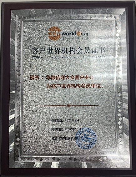 华数传媒大众客户中心成为客户世界2020/2021年度企业会员