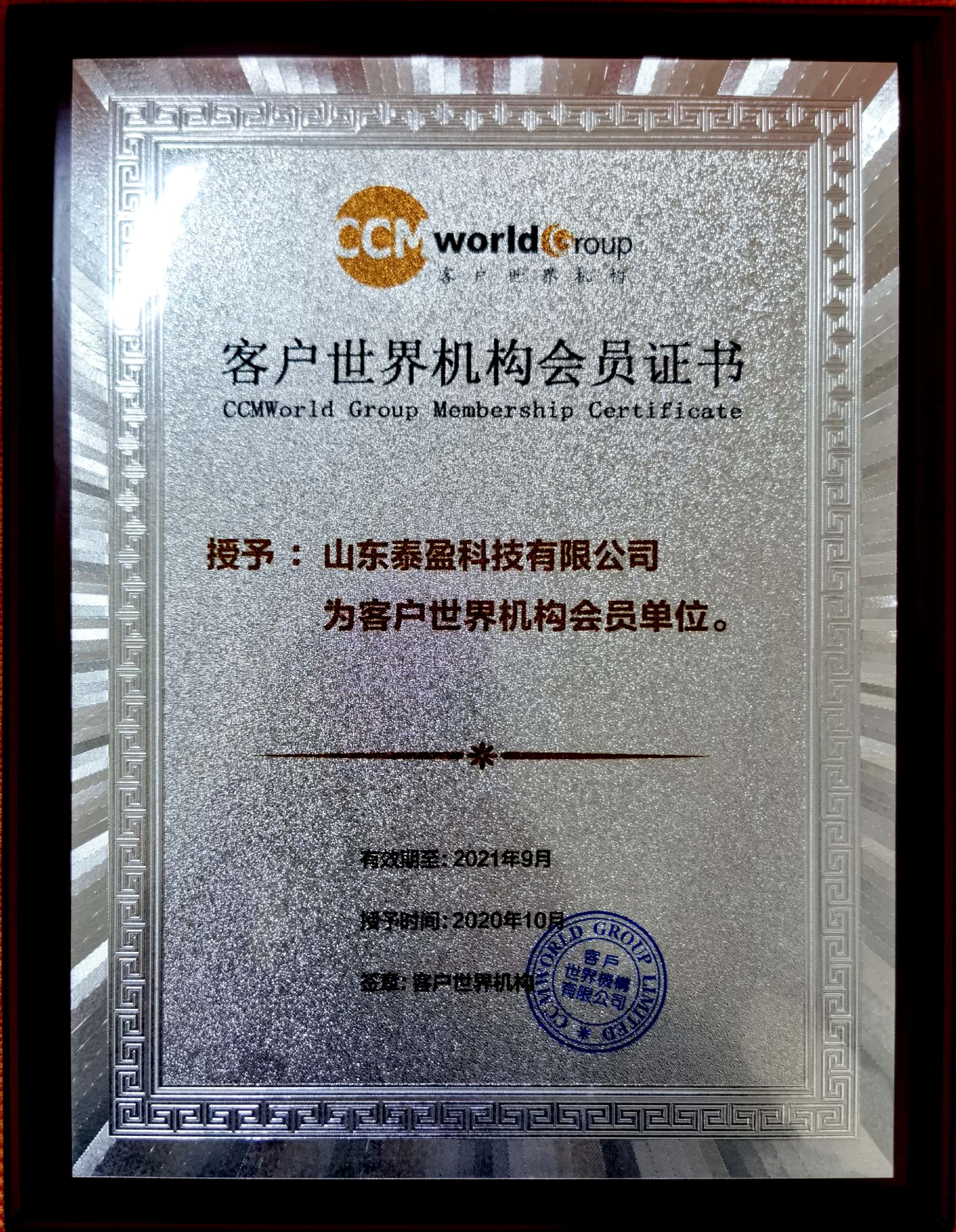 2020年10月20日,借举办“2020第十六届客户世界年度大会”的契机,泰盈科技正式成为客户世界2020/2021年度企业会员。