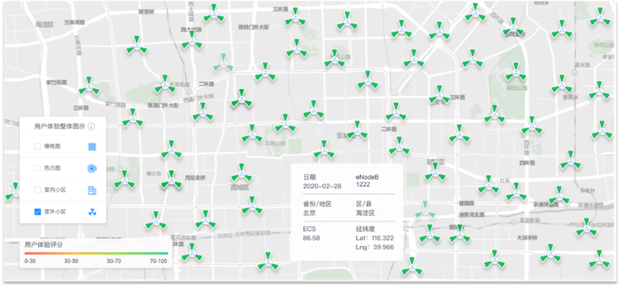 图2描述了电信运营商面向网元设备系统监控图,看上去所有系统和设备的指标一片正常,健壮性可靠性均超过99.999%。图3描述用户体验感知情况,即便是0.001%,在一片100*100栅格组成的区域中,可能也意味着一天下来成百上千名用户的不满。