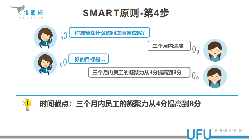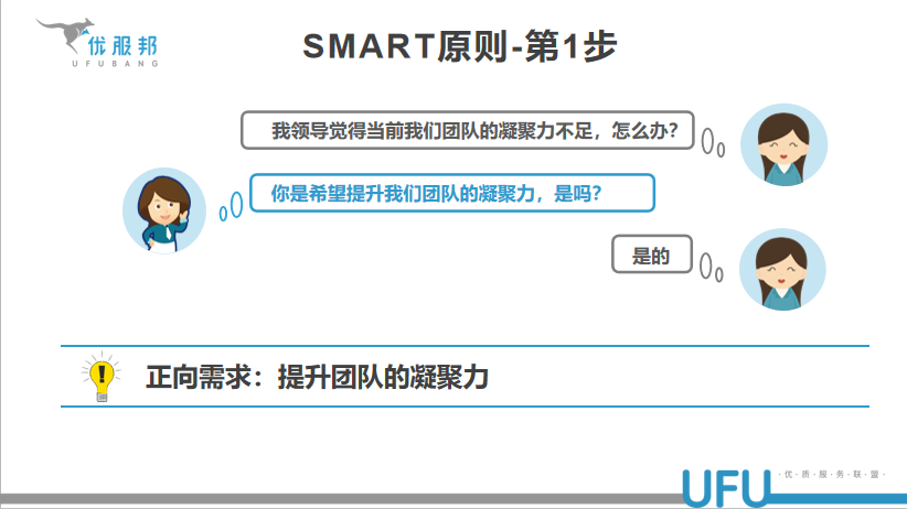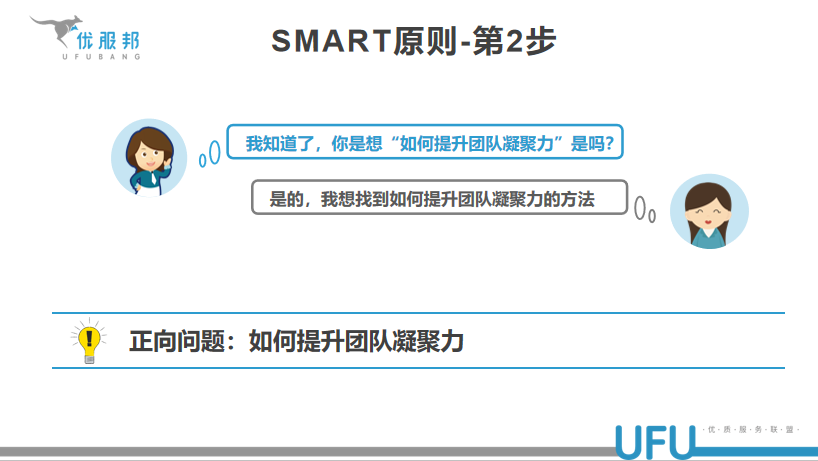 这些看起来清晰简单的目标我们看数据报表就可以。但在实际工作中,班组长收到的任务不仅仅有这些符合SMART要求的,还会有一些没有具体指标衡量的。比如:如何让员工更积极主动,如何提升满意度;稳定疫情期间员工的情绪;团队凝聚力不足,员工自驱力不强,近期接通率太低了……工作中遇到这样的情况怎么办呢?