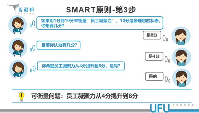非常简单三句话:如果用1-10分来衡量**,10分是最理想的状态,你想要几分;现在是几分;确认:你想要的是…是吗?