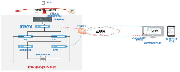 对于业务系统和多媒体处理系统的访问能力,可以视企业的网络基础设施情况。如果不能提供通过互联网访问业务系统和多媒体处理系统的能力,则远程座席只能处理客户来电,手工记录服务处理情况、后续补录入业务系统,多媒体处理无法完成。如果可以提供通过互联网访问业务系统和多媒体处理系统的能力,则远程座席将具备与职场座席完全相同的处理能力。