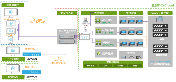 除此之外,企业还可以考虑通过云桌面的方式(图5)实现远程座席应用,而云桌面的方式同样也可以应用在座席职场环境下。