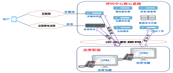 此方式下,座席具有对于业务系统、多媒体处理系统、语音处理的全能力,录音和报表也均不受任何影响。