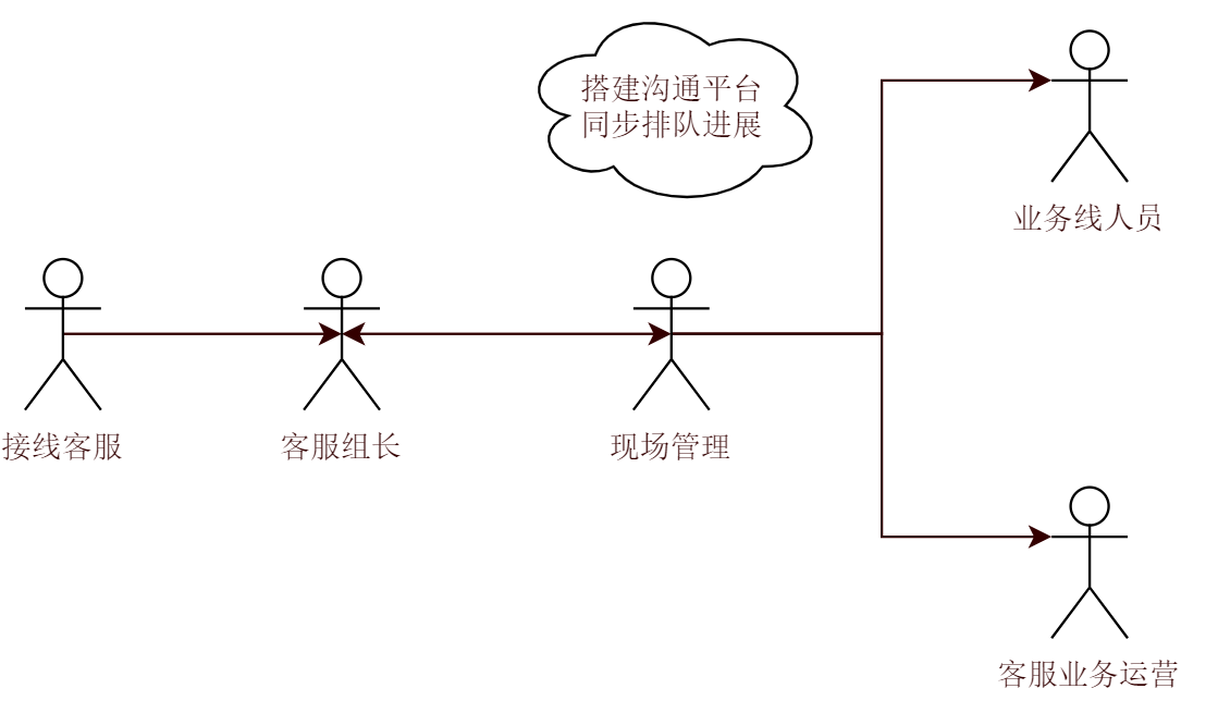 跨业务支援时间比较久:多个业务同时出现排队峰值的概率比较小,所以一般在某一条业务发生排队峰值的时候,现场会安排其他业务线培训过发生排队峰值业务线的客服进行支援,但是支援的流程从确认支援方案到最终支援人员开通权限上线接线往往需要15分钟左右,不能及时地发挥支援作用。