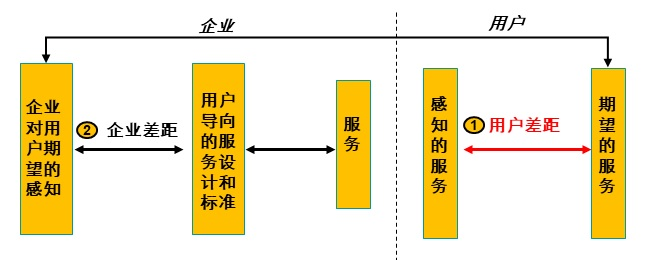 如图1所示,用户对服务的实际满意度来源于用户差距,就是用户期望的服务与感知到的服务的差距。而绝大多数企业在制定服务标准时是根据企业差距,即企业对用户期望的感知与目前用户服务标准的差距。因为企业高层站在比用户高很多的视野上,所以他们往往大幅度高估“对用户期望的感知”,制定很高的服务标准;但本身能力和资源又跟不上,这些标准又无法很好满足,从而引起大量的用户投诉。