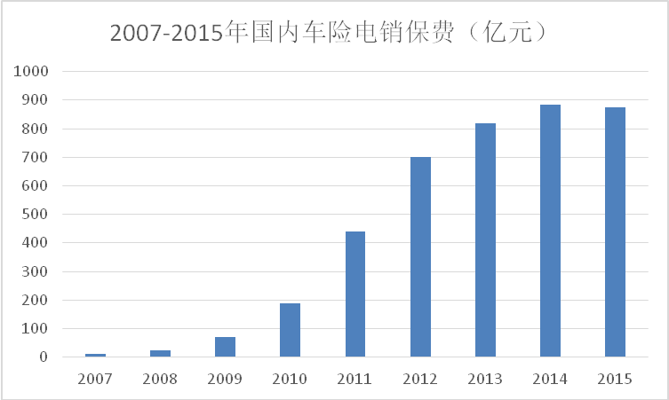 图1:2007-2015年国内车险电销保费规模(数据来源:网络)