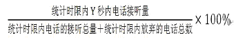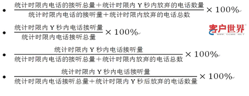 第一个公式实际上认为,无论是Y秒内还是Y秒外,凡是被接听了电话的客户都应该是满意的,因为他们的电话都被接听了,而在Y秒内放弃的电话客户我们视为他们是主动放弃的,因此分母是来电总量,而分子是由总的电话接起量和Y秒内的电话放弃量两部分构成的。