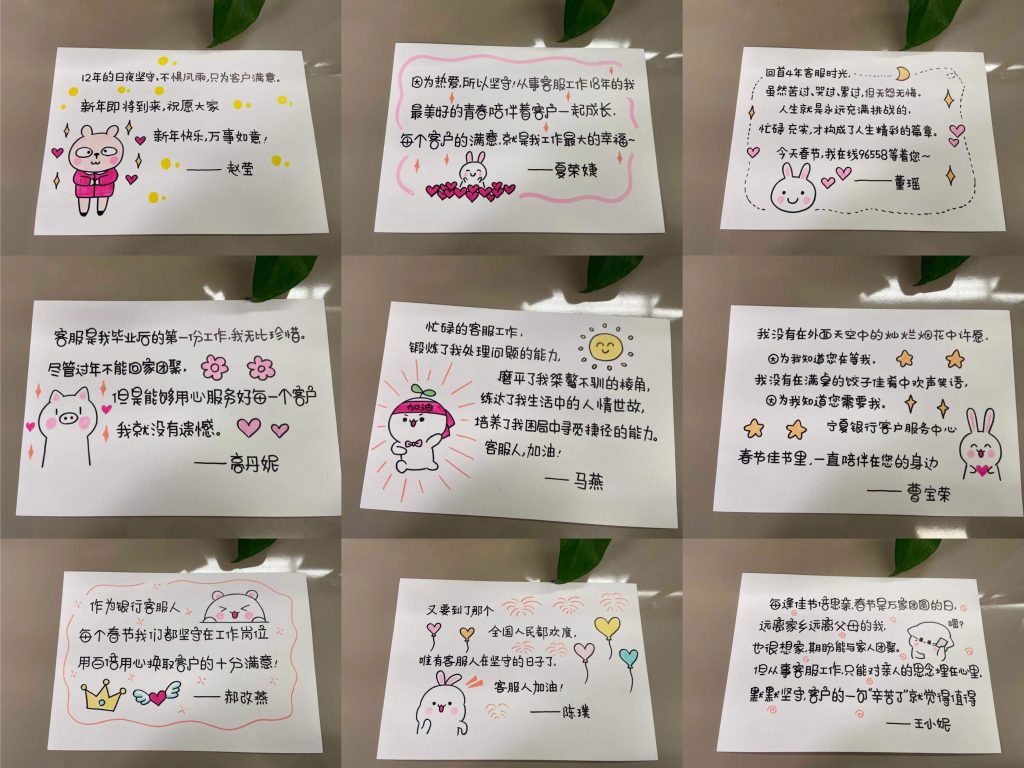 爆竹声声送鼠去,烟花朵朵迎牛来!又到了全国人民阖家团圆、普天欢庆的日子。当吉祥的灯笼高高挂起,守岁的爆竹声声响起,千家万户都沉浸在吃团圆饭、看春晚、观烟花、抢红包、走亲访友的喜悦中时,有这样一群人,从未停下工作的脚步,她们,就是一年365天默默坚守在岗位上的银行客服人。7*24小时特殊的上班模式使她们颠倒黑白,舍小家、顾大家,在平凡的岗位上默默付出。身为客服人,在每个节日来临,都比以往任何一个时候更加懂得坚守岗位的责任和意义。